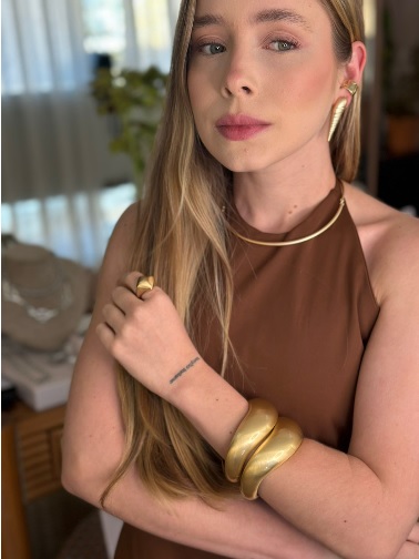Sinta a brisa marinha em cada detalhe. A elegância da concha espiral, agora em uma versão escultural banhada a ouro, feita para mulheres que não passam despercebidas.