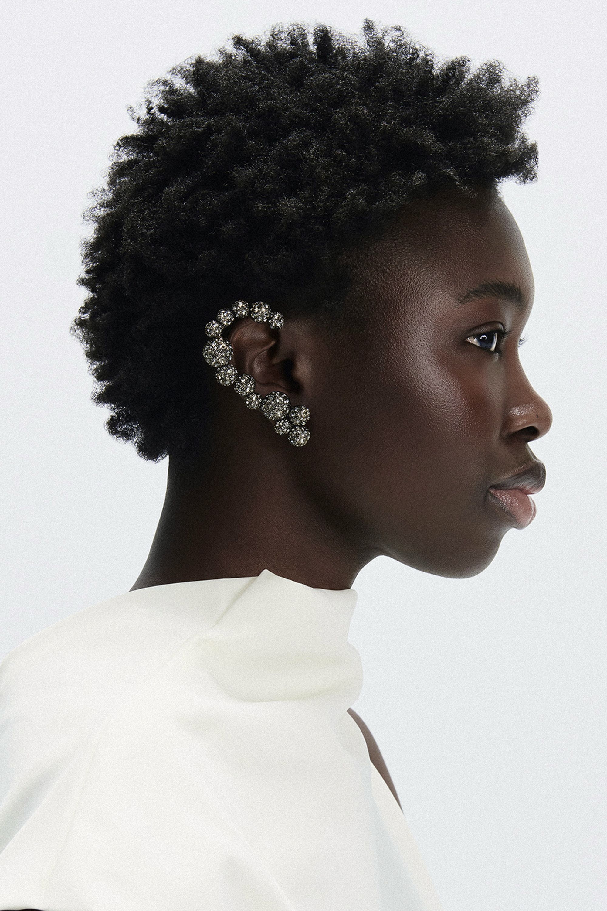 BRINCO EARCUFF CONFECCIONADO COM CRISTAIS SWAROVISKI NO BANHO PRATA ENVELHECIDA