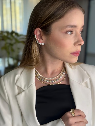 Sofisticação em cada detalhe. O design exclusivo do Ear Cuff Júlia une das lapidações geométricas ao brilho do ouro 18k, criado especialmente para mulheres que dominam a arte de brilhar.