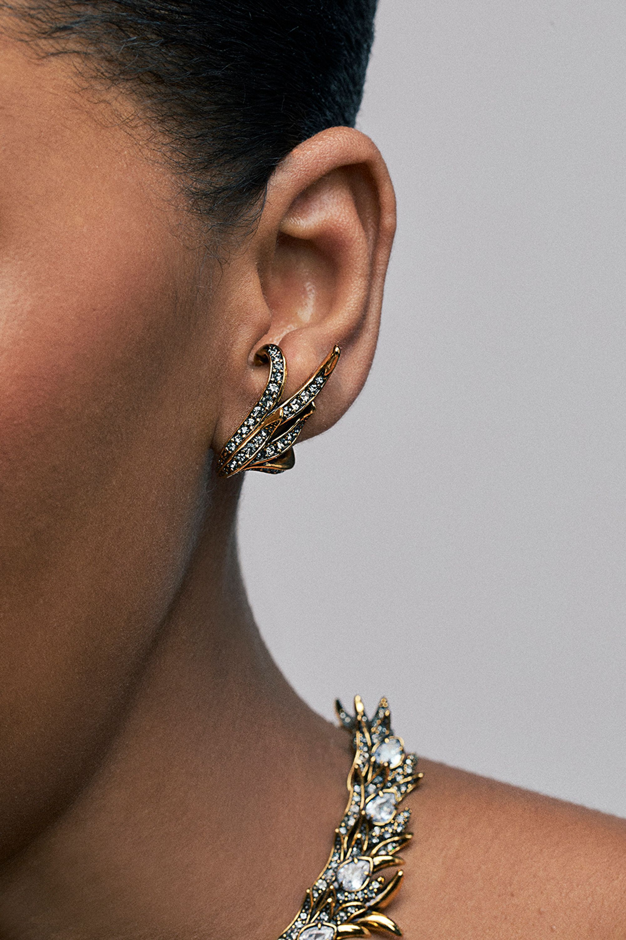 BRINCO EARCUFF BANHO DE OURO VINTAGE CON CRISTAIS SWAROVISKI BRINCO DE ENCAIXE Ver mais