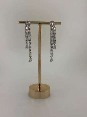 Brinco semijoia no banho de ródio proporciona um reflexo reluzente e um acabamento com duas fileiras cravejado com zircônias.
