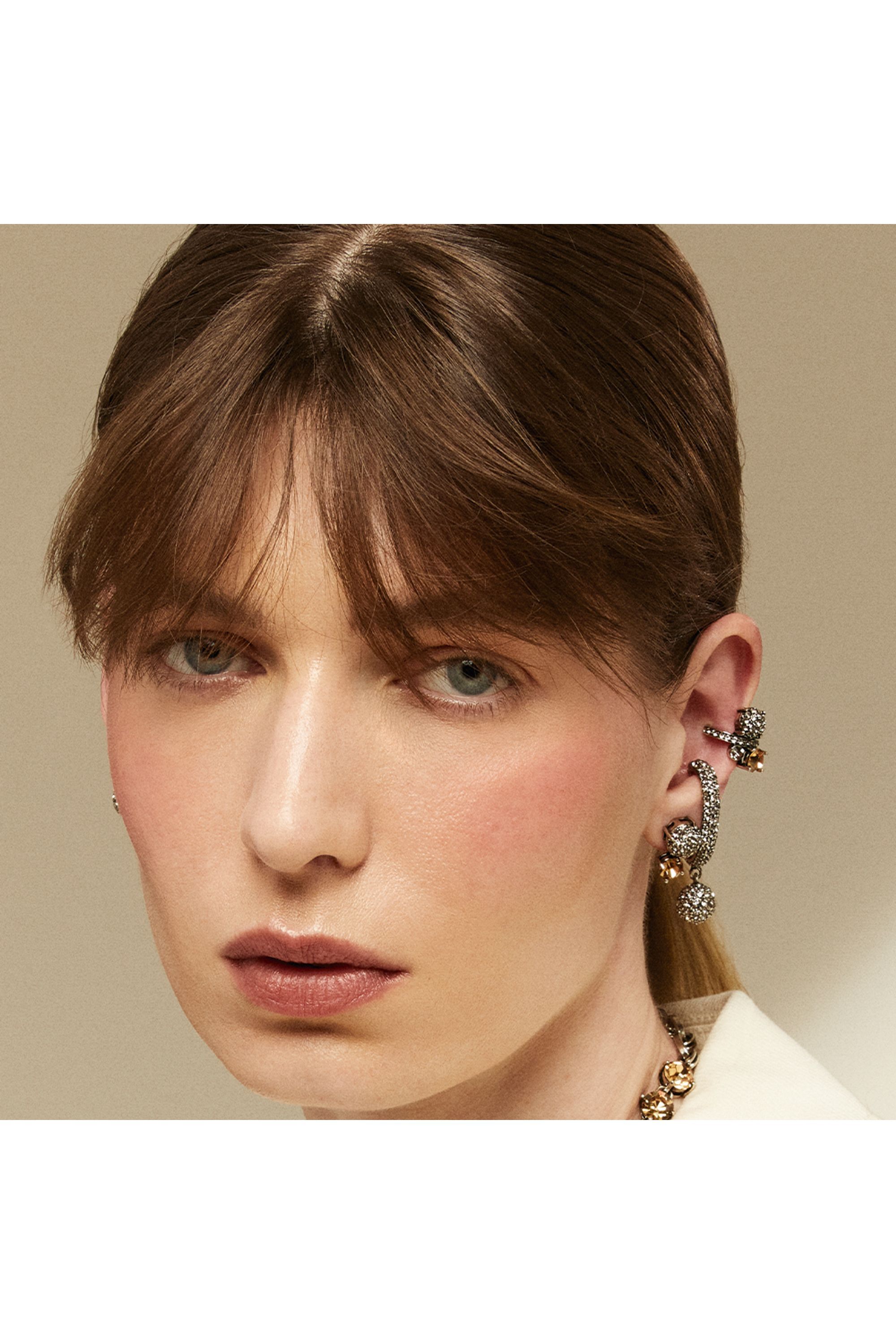 BRINCO PONTO DE LUZ COM PAVE E CUFF CONFECCIONADO NO BANHO DE OURO ENVEKHECIDO E CRISTAIS SWAROVISKI.