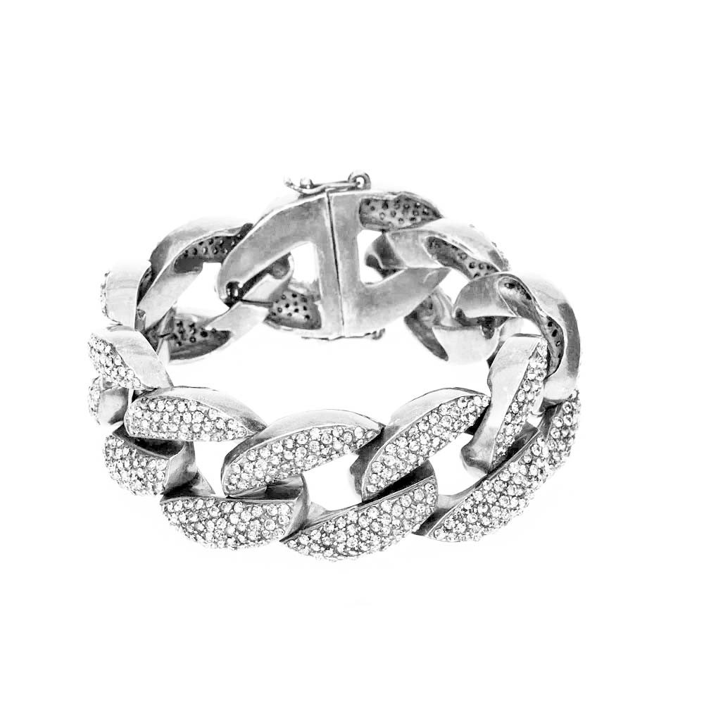 Banho Prata Boho, com 975 Cristais Jet Hematite. Uma de nossas peças Classics, a pulseira Grumê Strass, em uma versão completamente contemporânea que confere ao seu look a elegância e sofisticação necessárias para arrasar.