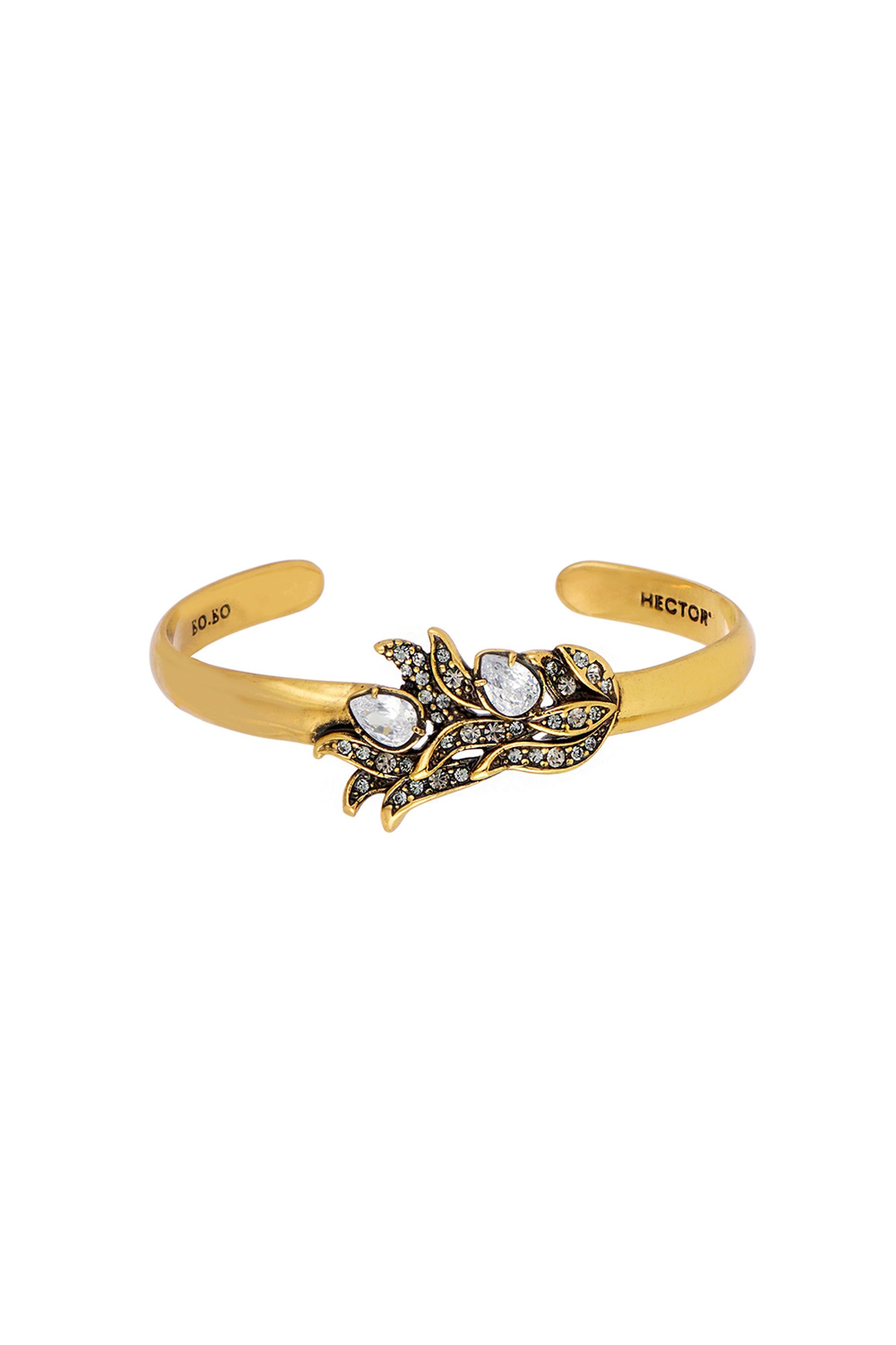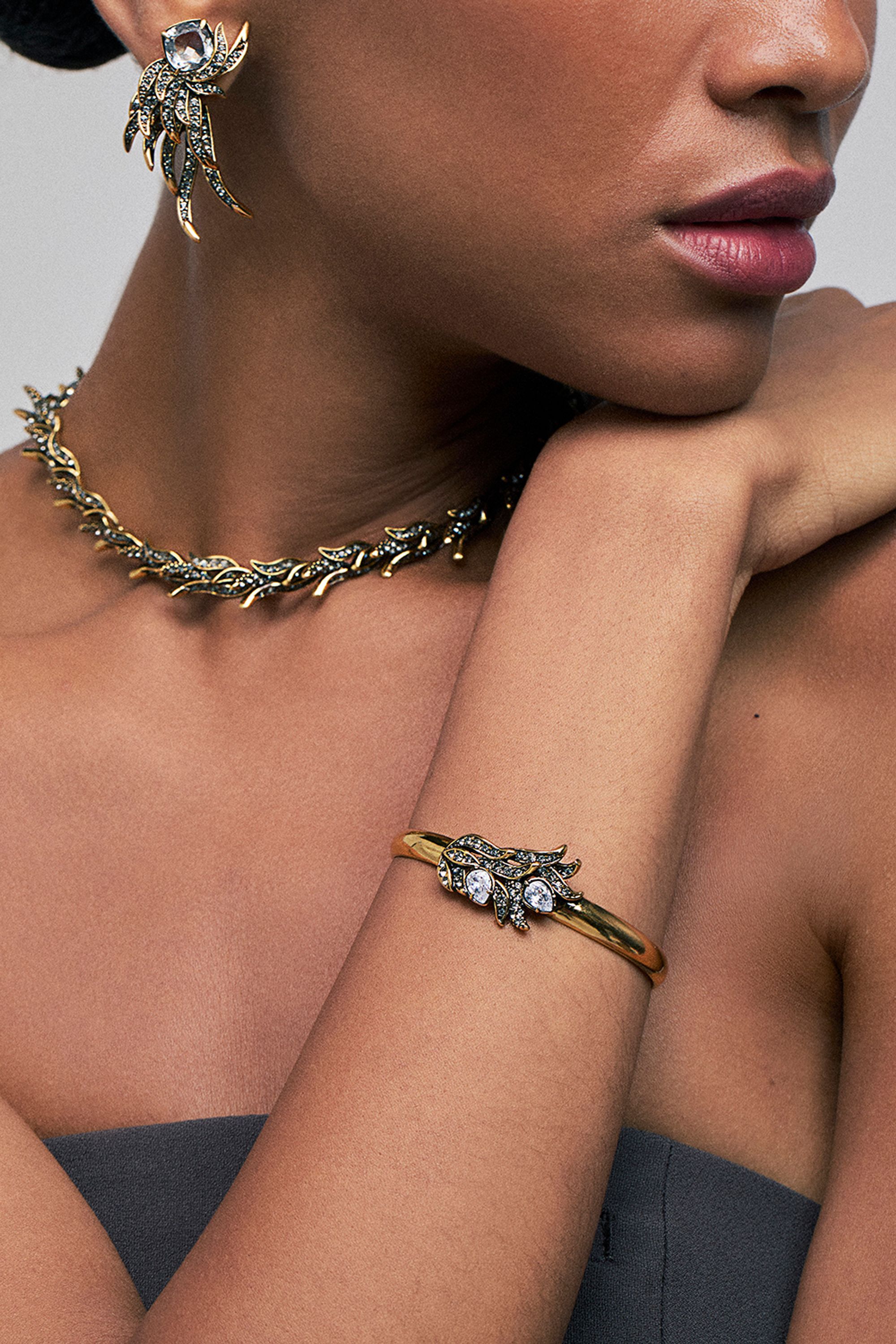 BRACELETE COM DESENHO DE ASSAS CONFECCIONADO NO BANHO DE OURO ENVELHECIDO COM CRISTAIS SWAROVISK